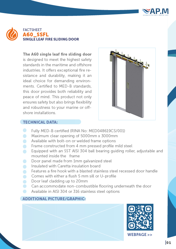 The A60 fire sliding door offers top-tier safety and durability for maritime and offshore use, MED-B certified for reliability.